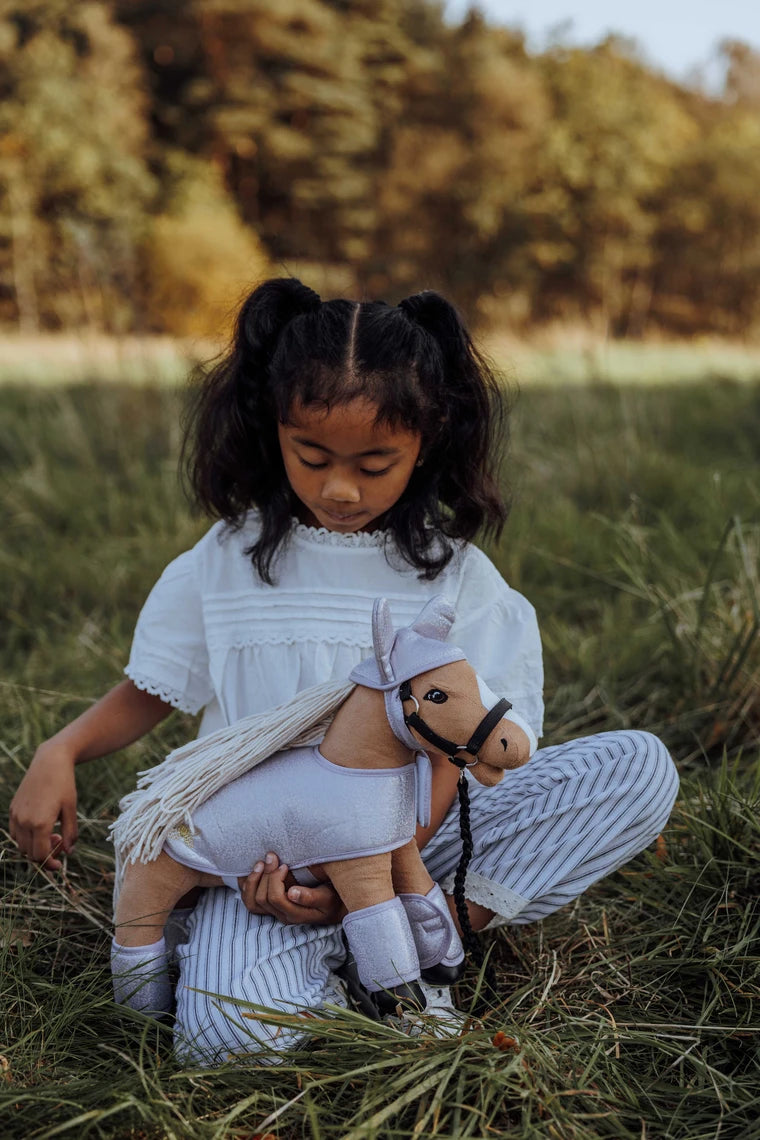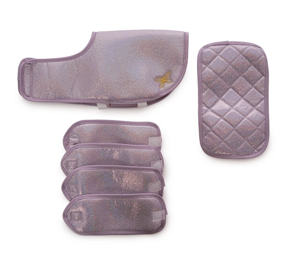Giv din lille rytter mulighed for at skille sig ud med dette luksuriøse tilbehørssæt i Lilla Glimmer fra byASTRUP. Sættet er skabt til at bringe ekstra elegance, farve og beskyttelse til kæphesteuniverset og er perfekt til børn, der elsker at style deres kæphest med flotte detaljer.
