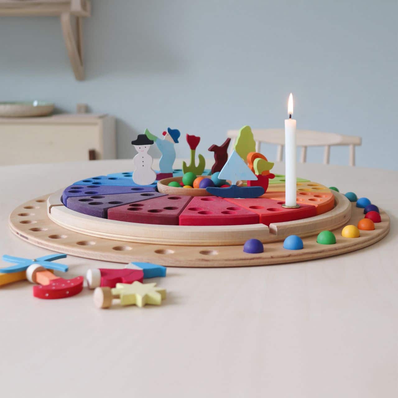 På den cirkulære skive til årskalenderen kan Årsringen (varenr. 03000) placeres i midten. Hver dag lægges en kugle på ringen, startende ved den aktuelle måned. Når måneden er slut, fjernes kuglerne fra ringen, så der bliver plads til den nye måned.